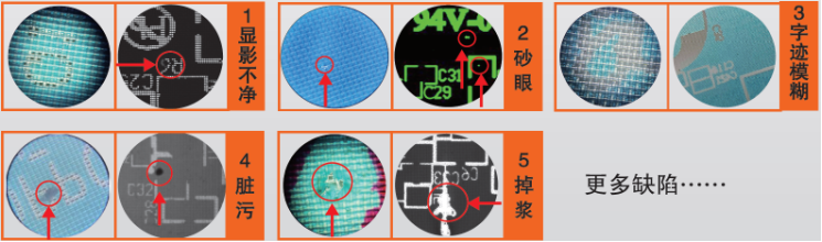 缺陷類(lèi)型:顯影不凈,字符模糊,沙眼,掉漿,雜物等